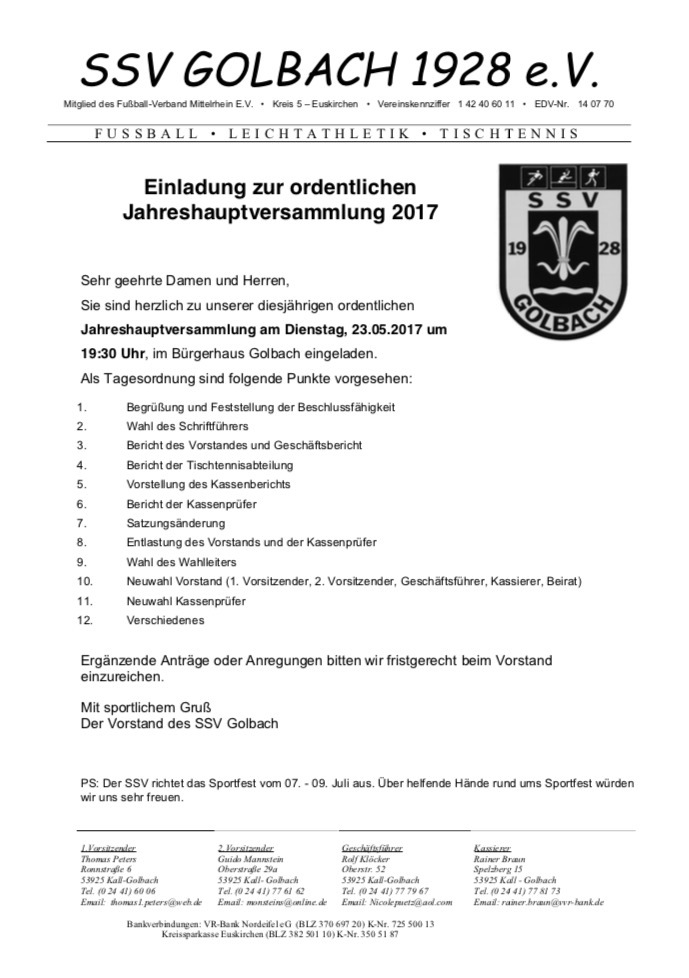 Jahreshauptversammlung am 23.05.2017