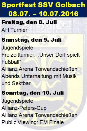 Das diesjährige Sportfest des SSV Golbach findet vom 08.07.-10.07 statt.